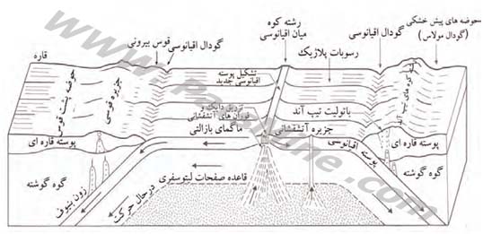 ها ضخامت دارد. این پوسته بر روی لایه سنگی سنگین تری به نام جبه قرار می گیرد که